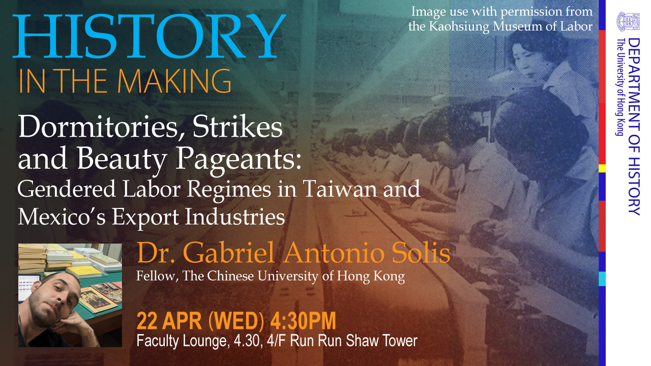 History in the Making – Dormitories, Strikes and Beauty Pageants: Gendered Labor Regimes in Taiwan and Mexico’s Export Industries (Dr. Gabriel Antonio Solis, Fellow, The Chinese University of Hong Kong)