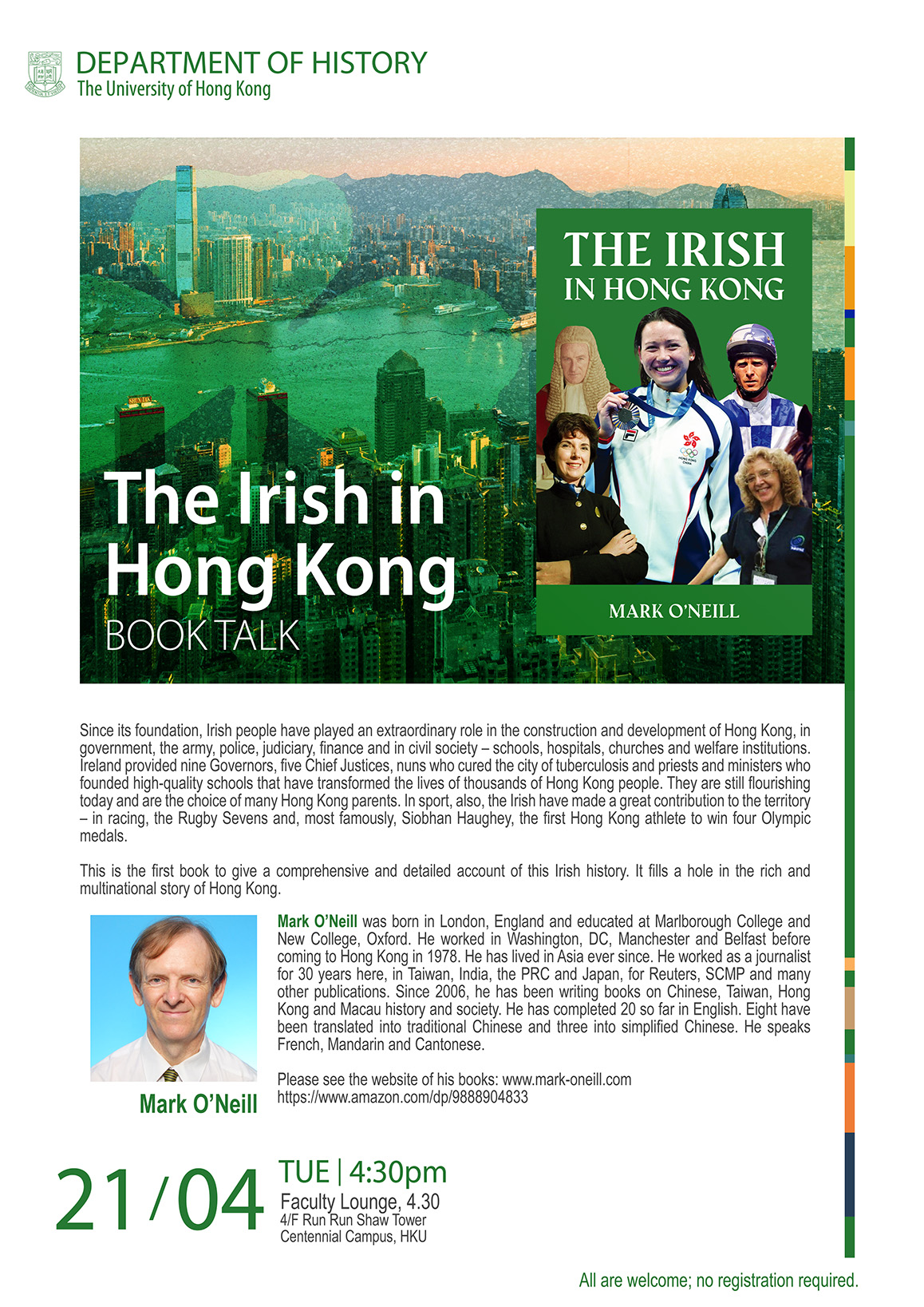 Mark O’Neill was born in London, England and educated at Marlborough College and New College, Oxford. He worked in Washington, DC, Manchester and Belfast before coming to Hong Kong in 1978. He has lived in Asia ever since. He worked as a journalist for 30 years here, in Taiwan, India, the PRC and Japan, for Reuters, SCMP and many other publications. Since 2006, he has been writing books on Chinese, Taiwan, Hong Kong and Macau history and society. He has completed 20 so far in English. Eight have been translated into traditional Chinese and three into simplified Chinese. He speaks French, Mandarin and Cantonese.