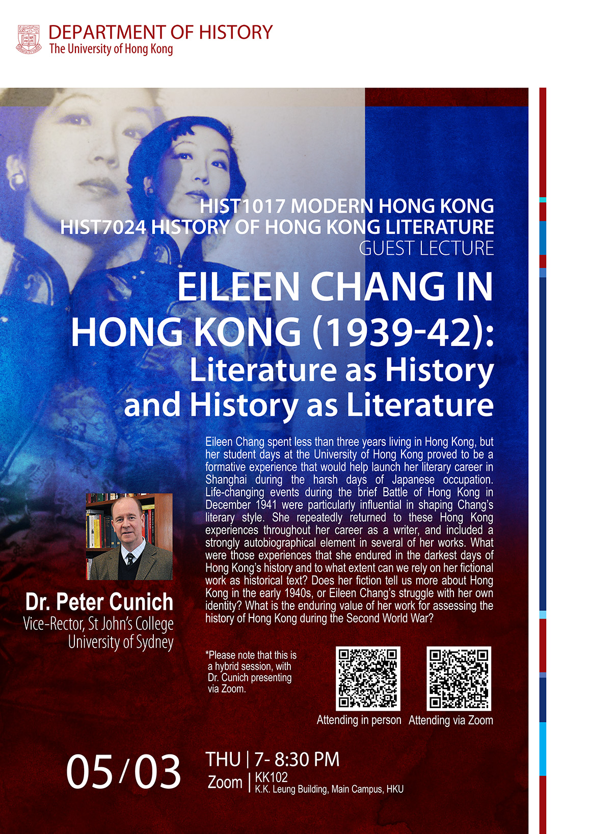 Public Lecture – Eileen Chang in Hong Kong (1939-42): Literature as History and History as Literature (Dr. Peter Cunich, Vice-Rector, St John’s College, University of Sydney)