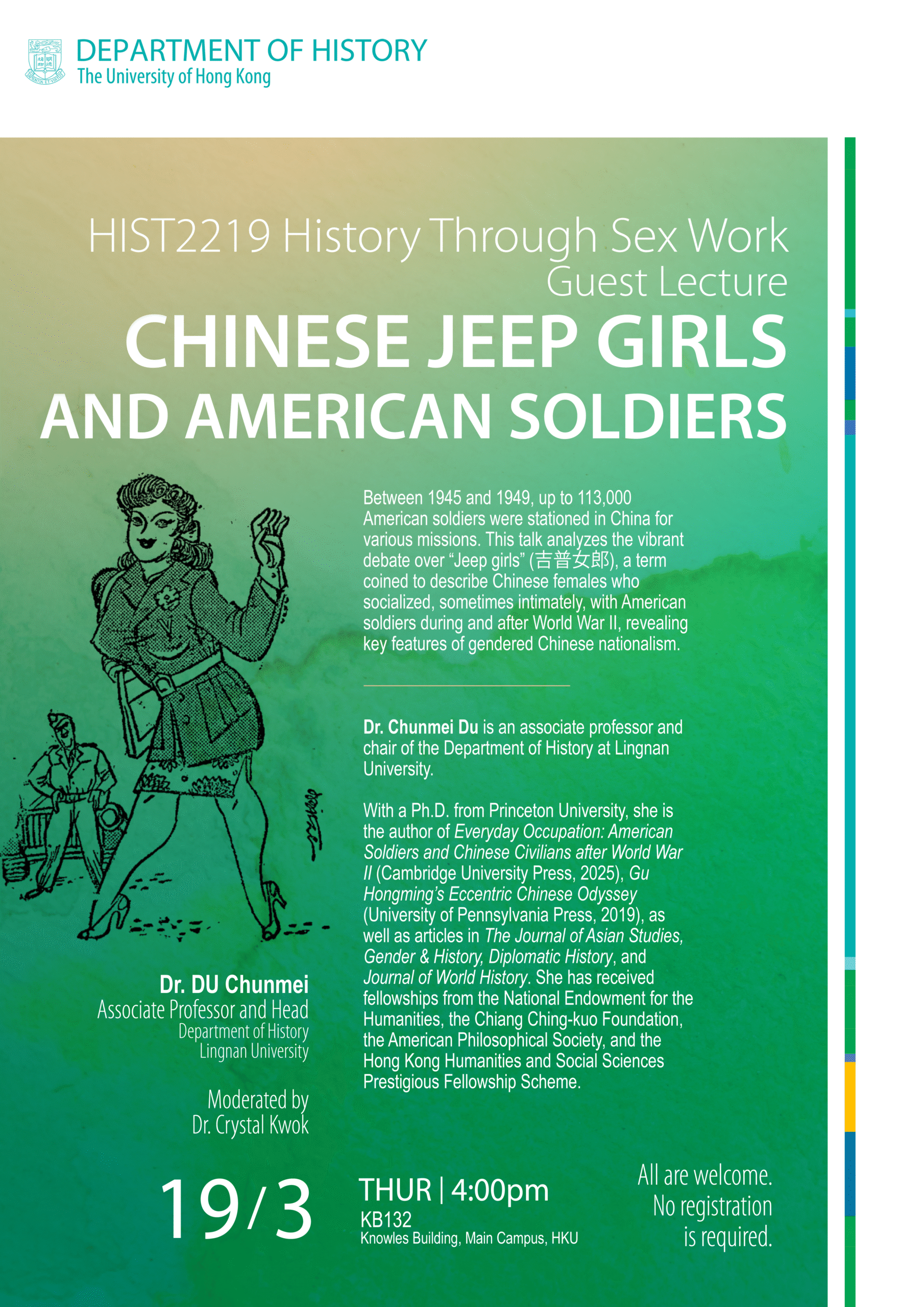 Public Lecture – Chinese Jeep Girls and American Soldiers (Prof. Chunmei Du, Associate Professor, Lingnan University)