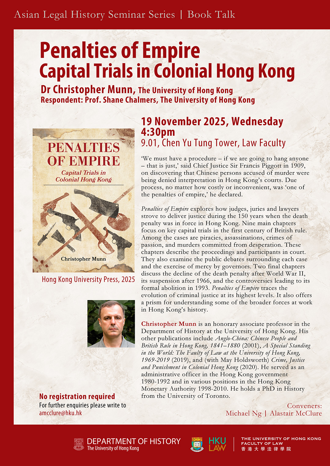 Asian Legal History – Penalties of Empire: Capital Trials in Colonial Hong Kong (Dr. Chris Munn, Honorary Associate Professor, University of Hong Kong)