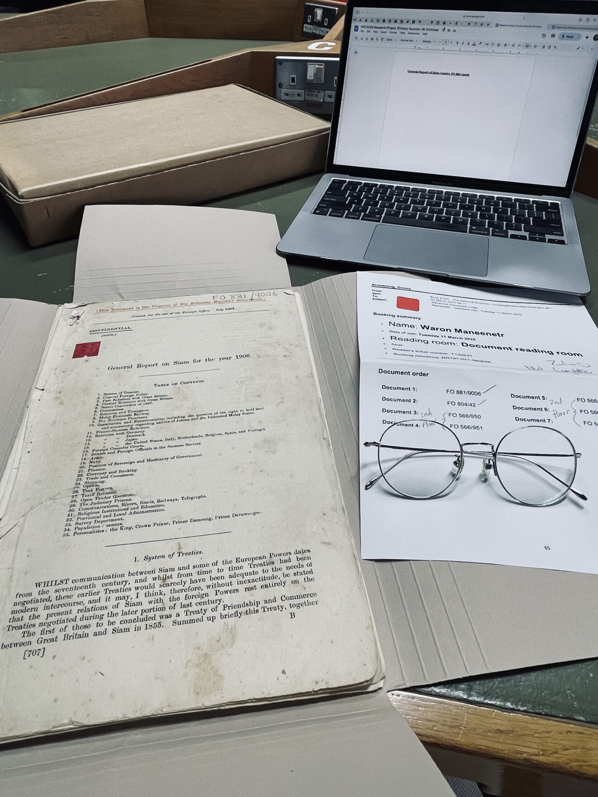 Thanks to this course, I visited six archives across Thailand and the United Kingdom, some notable ones including the National Archives of Thailand and the National Archives of the UK. Completing my research, I realized that archives are like academic supermarkets; they give life to the historical discipline, where each historian’s interpretation of primary sources adds new knowledge. Additionally, we as historians must utilize our creativity in finding the right sources to accomplish our work, just as a chef finds the right ingredients for a specific dish. Moreover, upon reflection, I learned there is a “cost” to a particular history. For instance, Thai archives are more restricted for foreigners, most easily noticed from their rigorous application procedure, than for domestic citizens because of sensitivity issues. However, it is arguably easier to make an original contribution given the scarcity of historians in the field, in contrast to British history, where a new work is published almost every day, given that the National Archives is open and relatively easier to access for all.
